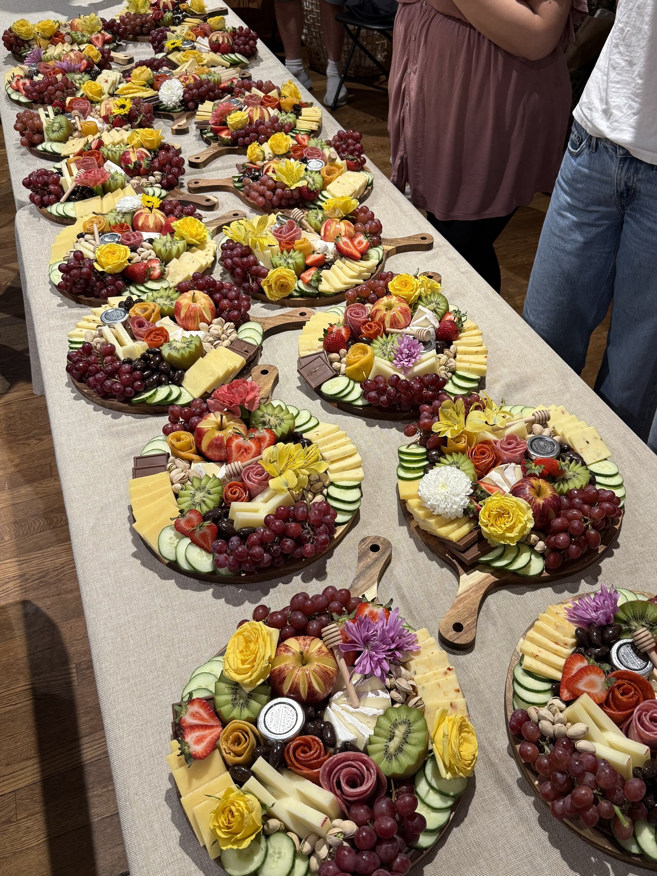 You laughed you labored, you layered waffled carrots & english cucumbers and ultimately you created incredible edible art. We were floored with your superior fruit sculpting skills & talkworthy talent. Each board a unique masterpiece.
