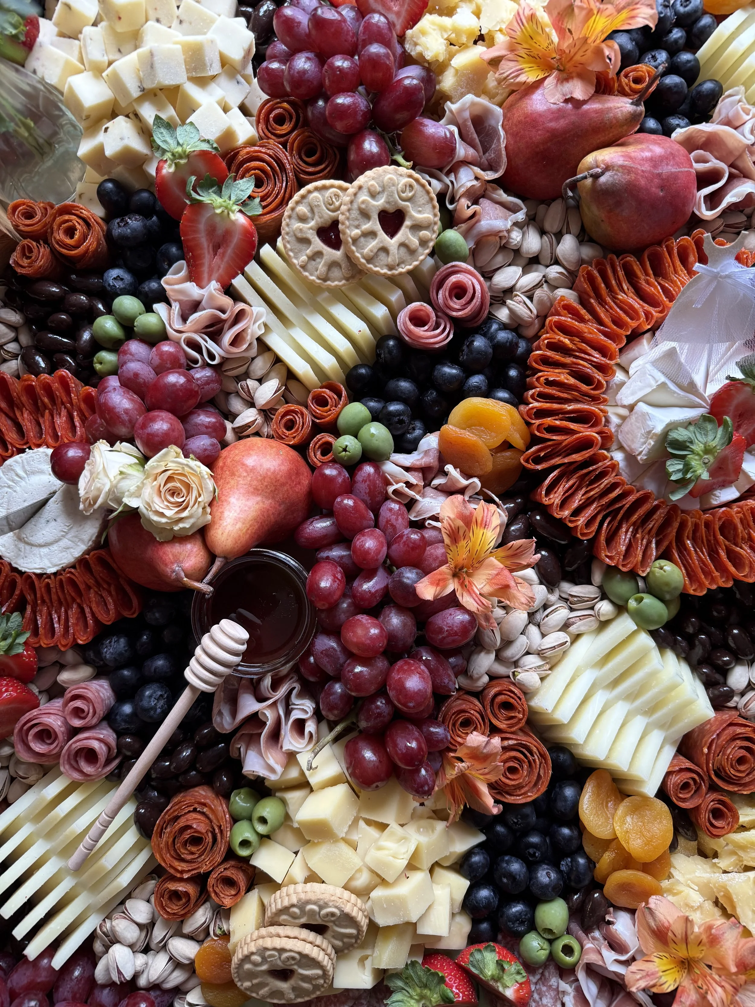 Please note, photos on the menu show similar style board designs, however, each board created is a unique edible masterpiece featuring varying items based on seasonal availability.
