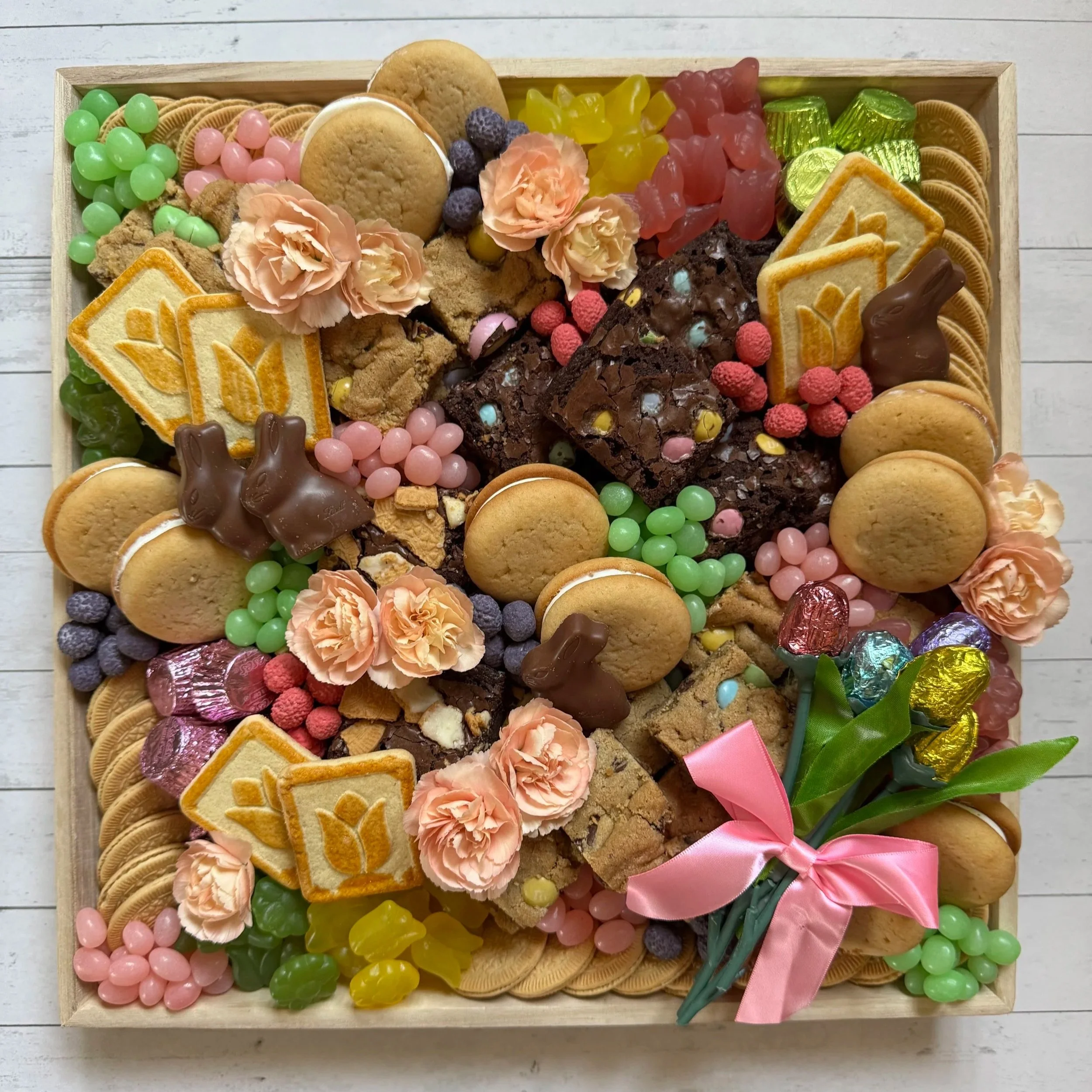 Thoughtfully curated with freshly baked cookie bars, decadent brownies, festive pastries, Easter candies, in addition to a selection of imported chocolates, and accented with seasonal décor for a playful holiday touch.